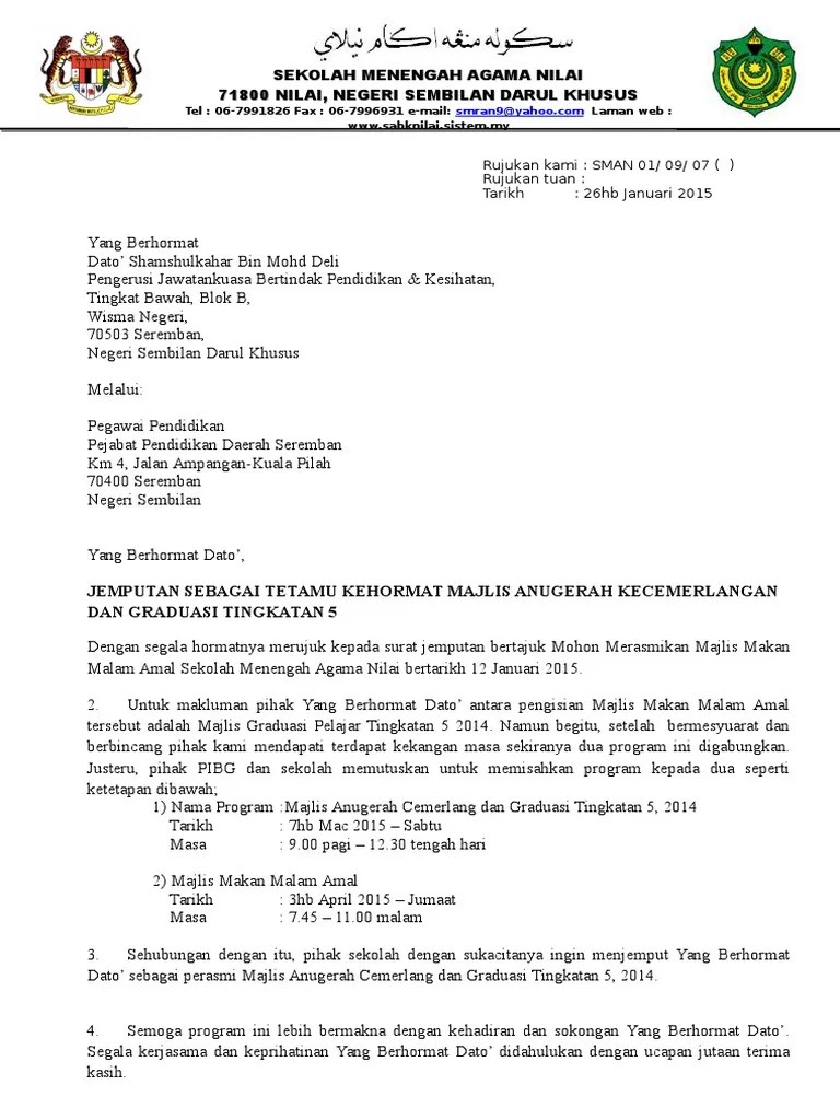 Paula s blog via lecoli exblog jp majlis konvokesyen politeknik jeli kali ketiga 2012 via www pjk edu my contoh surat jemputan kepada yang berhormat 28 images via 139 59 101 14 contoh surat jemputan perasmian sukan contoh surat via www tarket co. Untuk menjemput orang luar hadir memberikan ceramah di sekolah kita perkara yang paling penting adalah surat jemputan penceramah. Surat jemputan ceramah Azian Sabli.